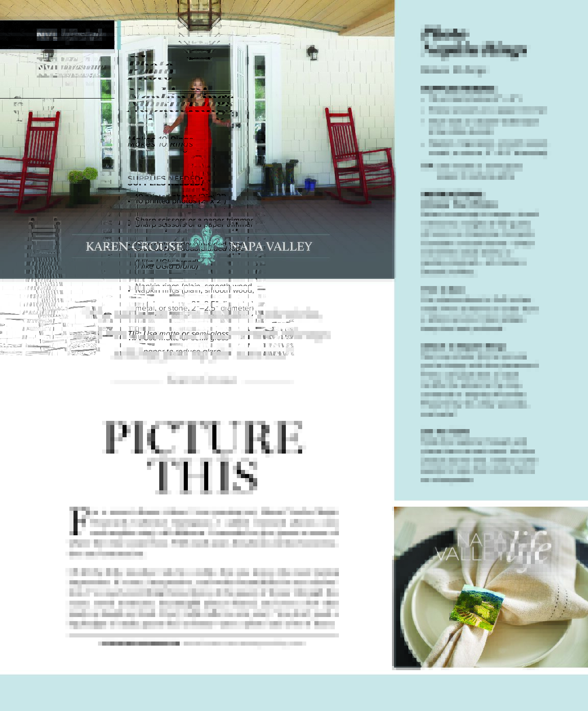 Karen draws inspiration from her vineyard and her 100-year-old farmhouse on Mount Veeder. Her passions include food and wine, entertaining, cooking, nature, Pilates, home décor and renovation, and embracing the beauty of life in Napa Valley.