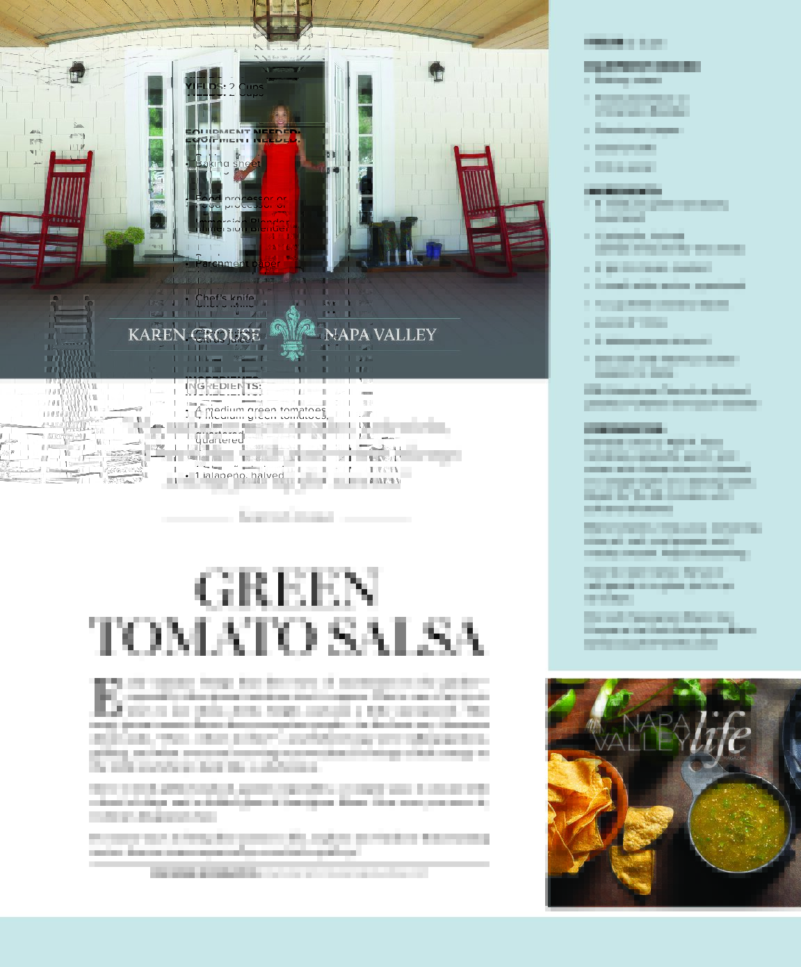 Karen is also known for her Napa Valley Life Magazine series, “Cooking with Karen Crouse,” now in its third year. For fourteen years, she was the guest chef at the renowned Hurley’s Restaurant in Yountville for their Mardi Gras celebrations.